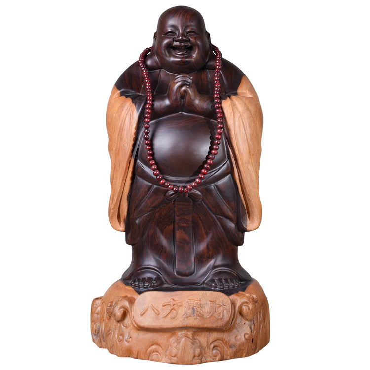 Hand-Carved Ebony Wood Maitreya Buddha | "Laughing Buddha" Statue for Good Luck & Wealth